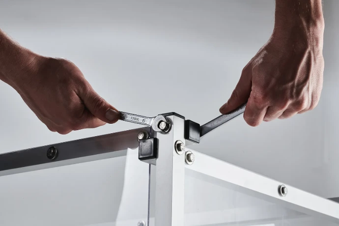 Cadres en aluminium anodisé, assemblés avec des boulons en acier inoxydable et renforcés à l'aide de ruban adhésif double face VHB de qualité industrielle.